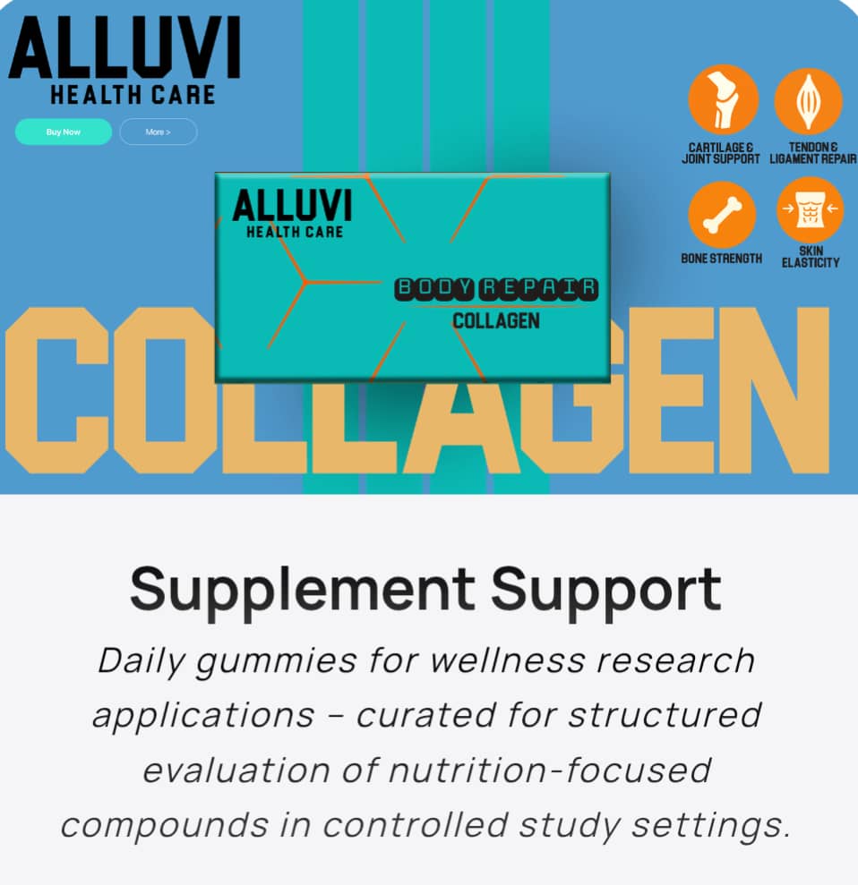 From peptide pens to supplement gummies, Alluvi’s systems support the collection of research data, structured logging, and weekly measurement summaries – enabling consistent evaluation as part of controlled research and development programs.
